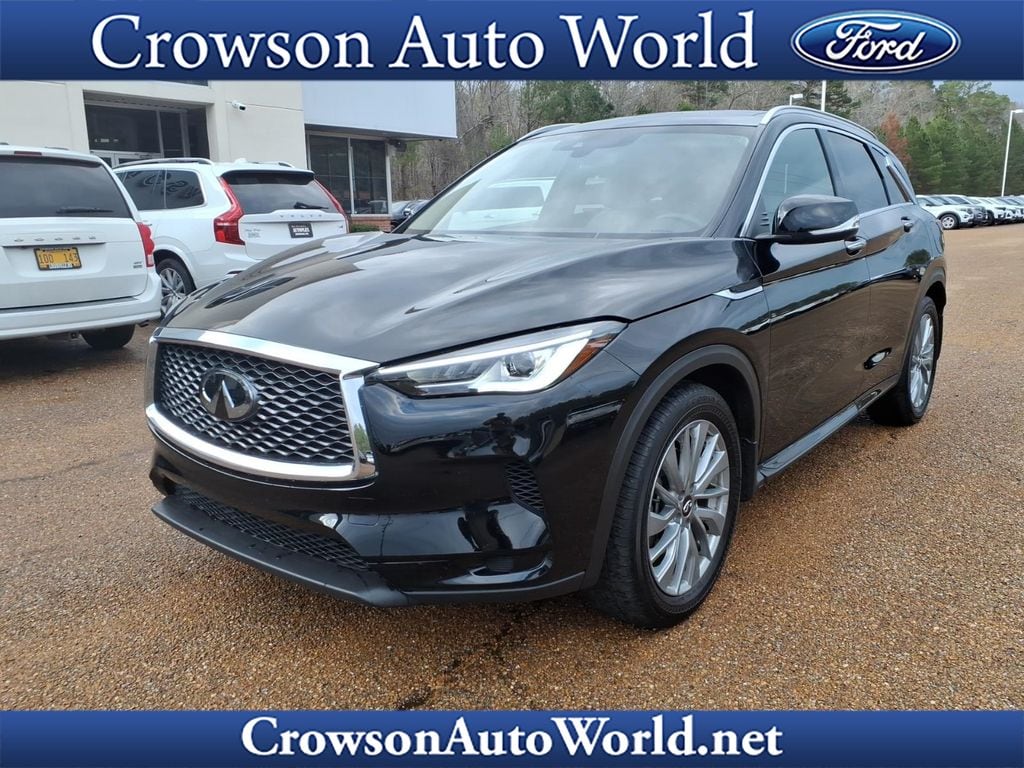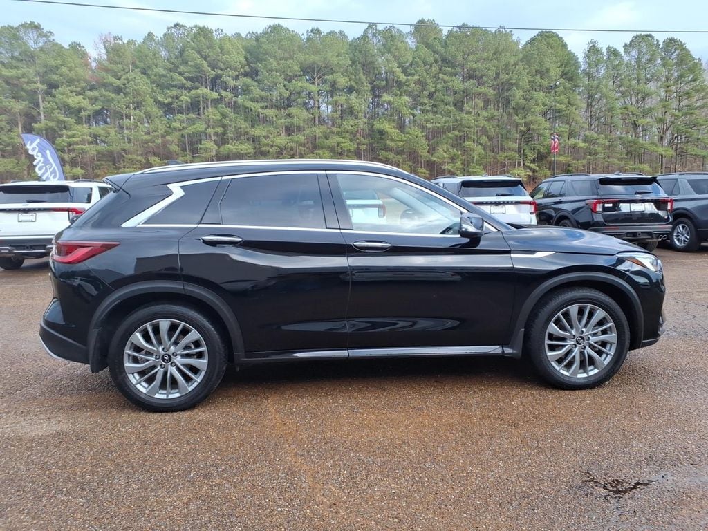 This vehicle is a certified CARFAX 1-owner. This unit's Forward Collision Warning system alerts the driver to potential front-end collisions, enhancing safety. The leather seats in it are a must for buyers looking for comfort, durability, and style. The vehicle features a hands-free Bluetooth phone system. The state of the art park assist system will guide you easily into any spot. Protect this INFINITI QX50 from unwanted accidents with a cutting edge backup camera system. The vehicle has a clean CARFAX vehicle history report. This mid-size suv features a high end BOSE stereo system. Never get into a cold vehicle again with the remote start feature on this INFINITI QX50. This 2025 INFINITI QX50 keeps you comfortable with Auto Climate. This unit has a 4 Cyl, 2.0L high output engine. This model is painted with a sleek and sophisticated black color. Conquer any rainy, snowy, or icy road conditions this winter with the all wheel drive system on the INFINITI QX50.