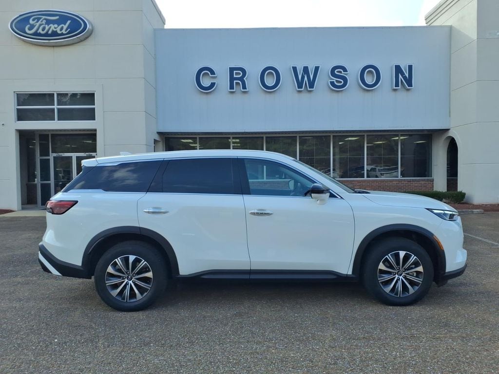 This model offers Apple CarPlay for seamless connectivity. Good News! This certified CARFAX 1-owner vehicle has only had one owner before you. The leather seats in this 1/2 ton suv are a must for buyers looking for comfort, durability, and style. The vehicle has a clean CARFAX vehicle history report. This vehicle offers Automatic Climate Control for personalized comfort. The vehicle offers Android Auto for seamless smartphone integration. See what's behind you with the back up camera on this unit. The state of the art park assist system will guide you easily into any spot. This 2025 INFINITI QX60 's Forward Collision Warning feature alerts drivers to potential front-end collisions. Bluetooth technology is built into this model, keeping your hands on the steering wheel and your focus on the road. Keep your hands warm all winter with a heated steering wheel in the INFINITI QX60 . This 1/2 ton suv's Lane Departure Warning helps keep you in your lane.